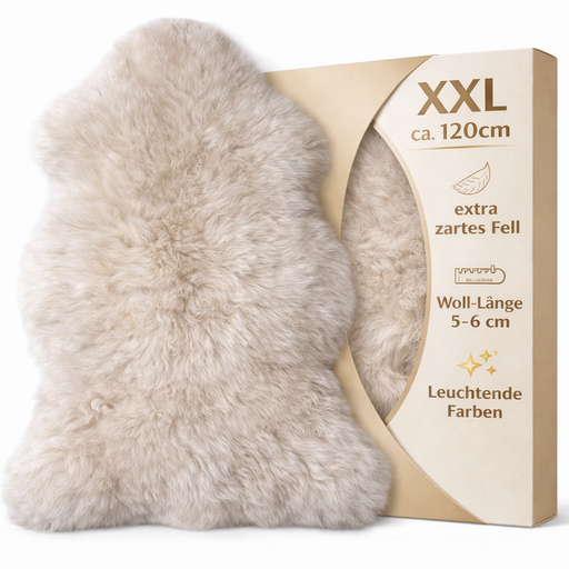 Vollständige Details anzeigenLammfell beige XXL SuperPremium | extra groß | 110-120 cm | medizinische Gerbung | chromfrei, aluminiumfrei